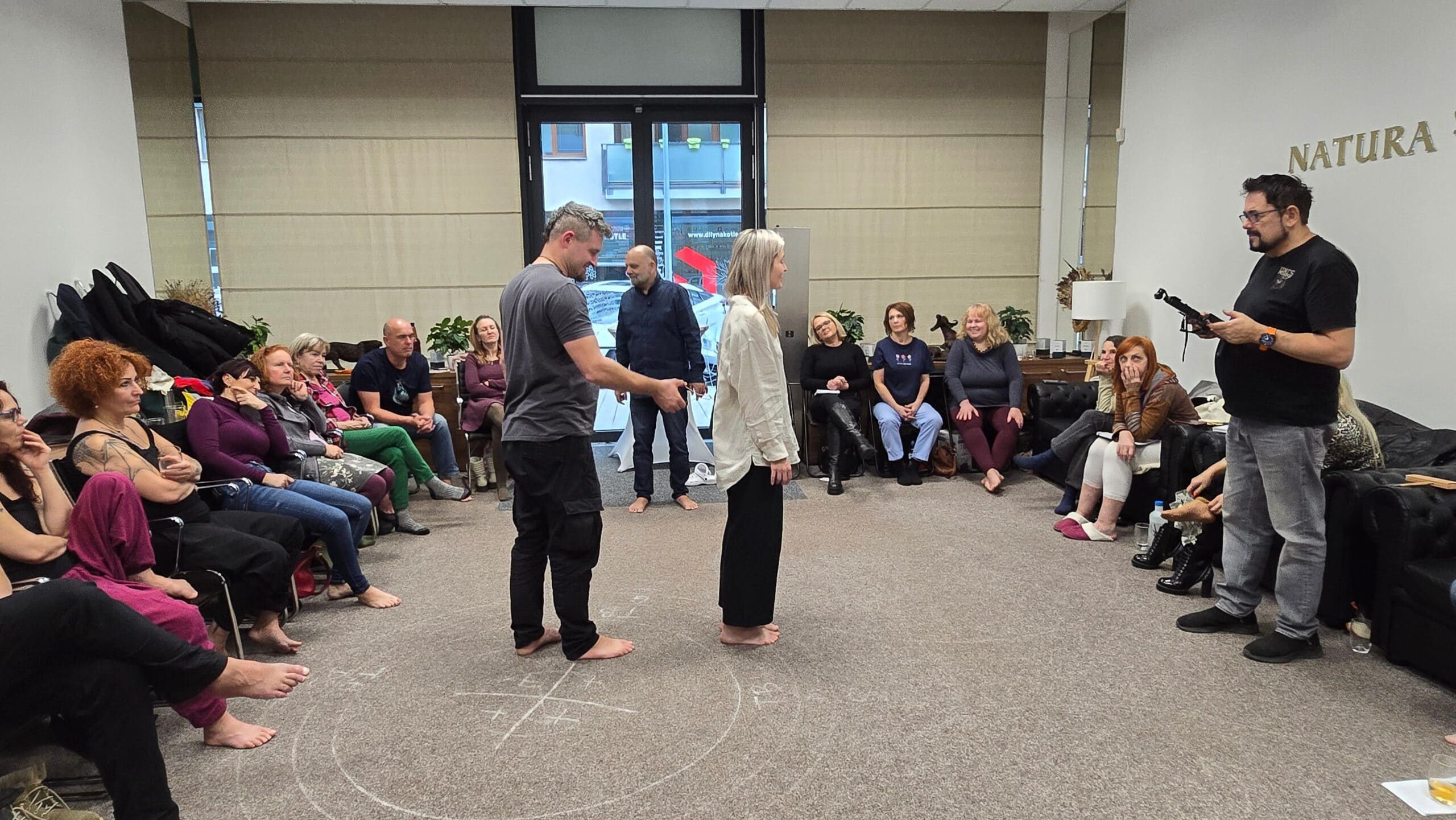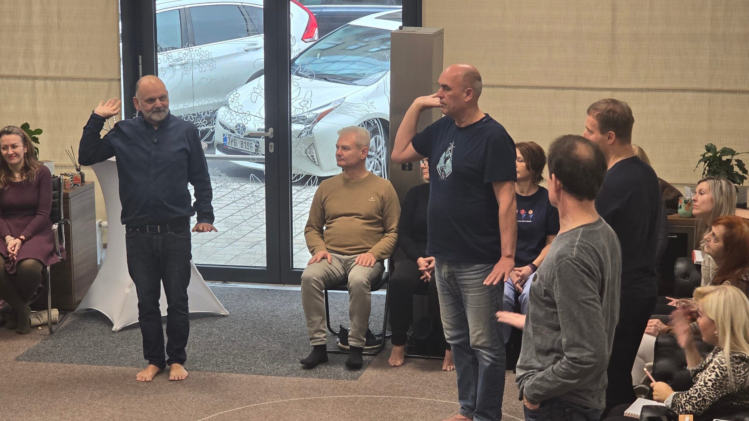 Ukázal jsem účastníkům cvičení, která mohou praktikovat doma, každý den. Protože skutečná změna nepřichází z jednoho semináře – přichází z důsledné každodenní praxe.